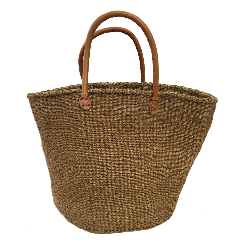 Hand woven sisal with hand sewn leather handles: hand carried.
